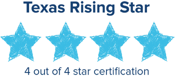We’re proud to be a Texas Rising Star 4-Star center — the highest quality designation a childcare program can receive in Texas. A 4-Star rating means your child gets the highest level of care, safety, and early learning support available in our state.